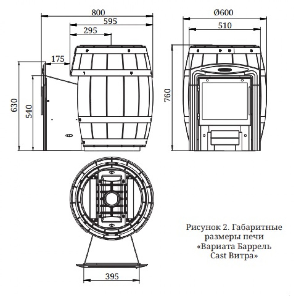 Печь для бани Вариата Cast Витра Баррель палисандр состоит из двух основных элементов: - это топливник, выполненный из сборного литейного чугуна, и наружный кожух для размещения каменной закладки, стилизованный под деревянный бочонок.