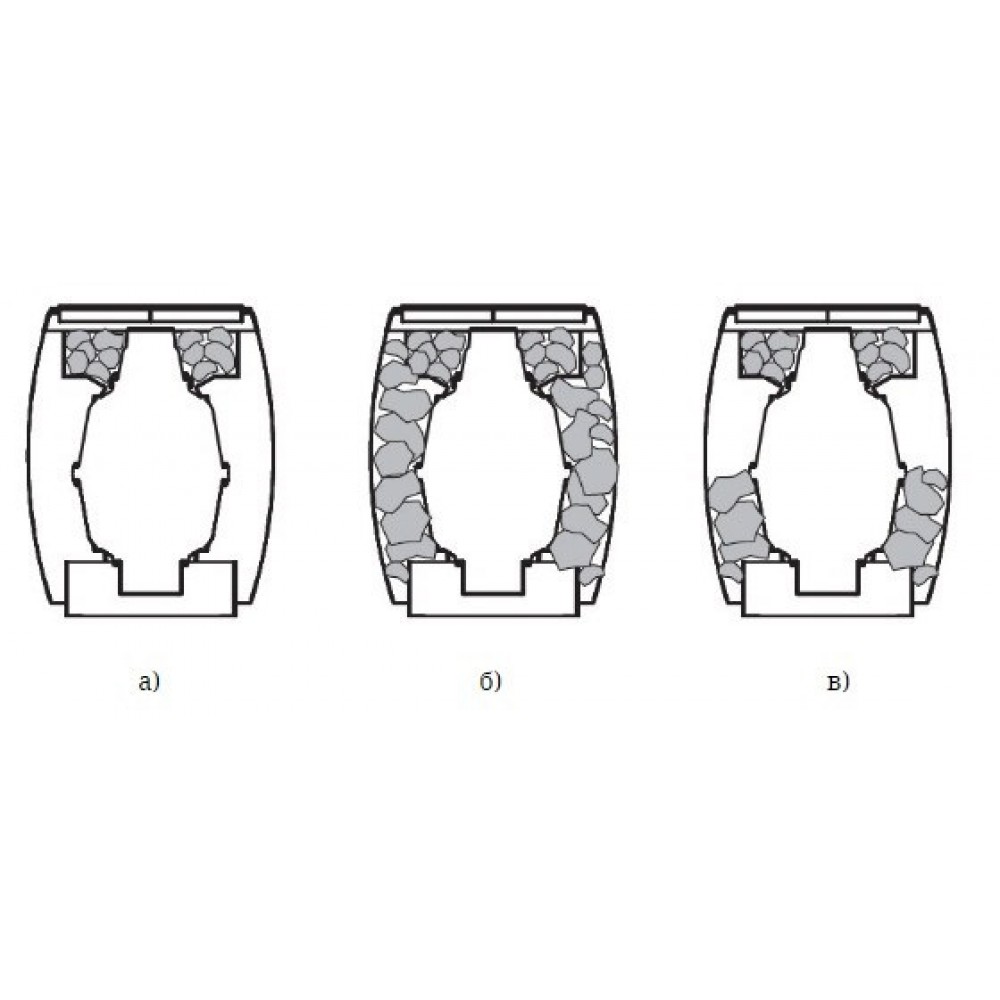 Второй вариант. Камнями заполняется каменка топки и все пространство между топкой и кожухом. Масса камней, загружаемых в печь при таком варианте их закладки, достигает 90 кг.