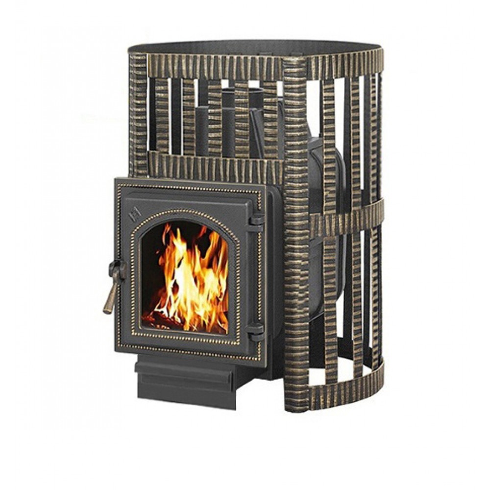 Банная чугунная печь Легенда Ковка 22 (270) укомплектована чугунной герметичной дверцей Везувий 270 с жаропрочным стеклом «SHOT ROBAX». Конвекционно-вентилируемый кожух "Ковка" изготовлен из металлической текстурированной полосы покрашенной термостойкой краской и покрытая патиной «Бронза».