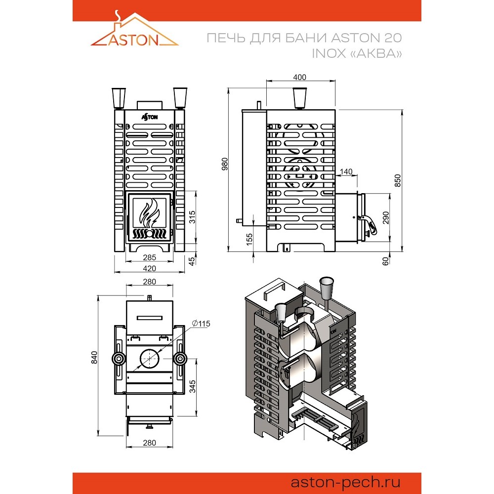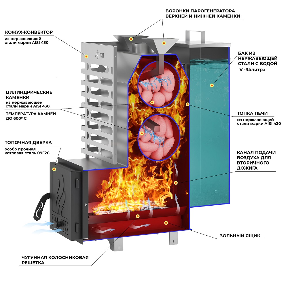 Печь для бани ASTON 20 INOX "АКВА"