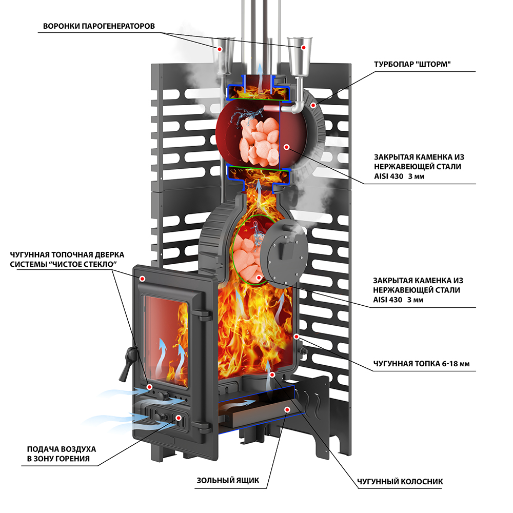 | Материал закрытой каменки | Нержавеющая сталь AISI 430 |
