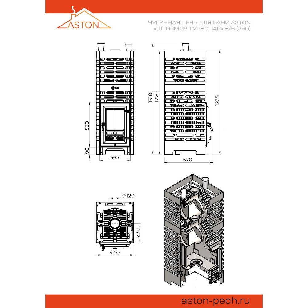 Печь для бани ASTON «Шторм 26 Турбопар» б/в (350)