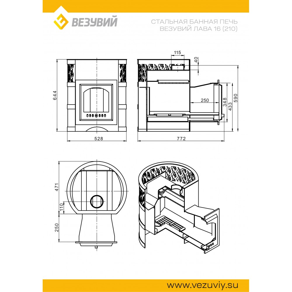 Печь для бани ВЕЗУВИЙ Лава 16 (210) "М" 2022