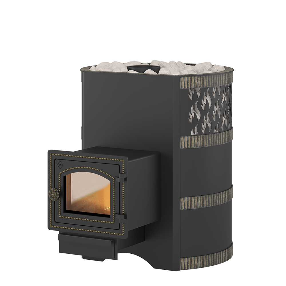 Кожух из стального листа и кованых стальных колец предназначен для обеспечения конвекции устройства открытой каменки и дополнительно защищает парящихся от жёсткого инфракрасного излучения. В верхней части кожуха для усиления движения воздуха сделаны прорезные отверстия в виде языков пламени.