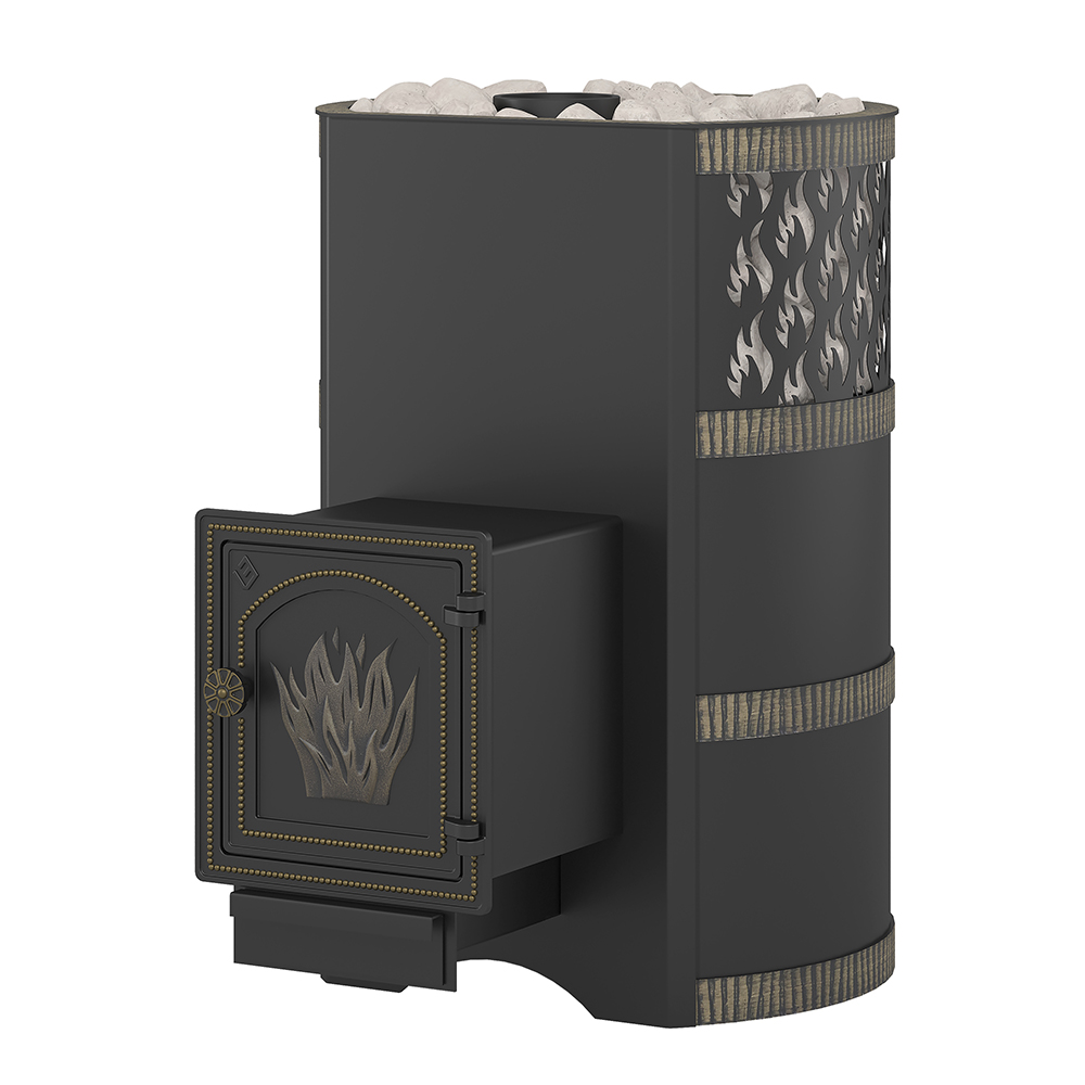 Кожух из стального листа и кованых стальных колец предназначен для обеспечения конвекции устройства открытой каменки и дополнительно защищает парящихся от жёсткого инфракрасного излучения. В верхней части кожуха для усиления движения воздуха сделаны прорезные отверстия в виде языков пламени.