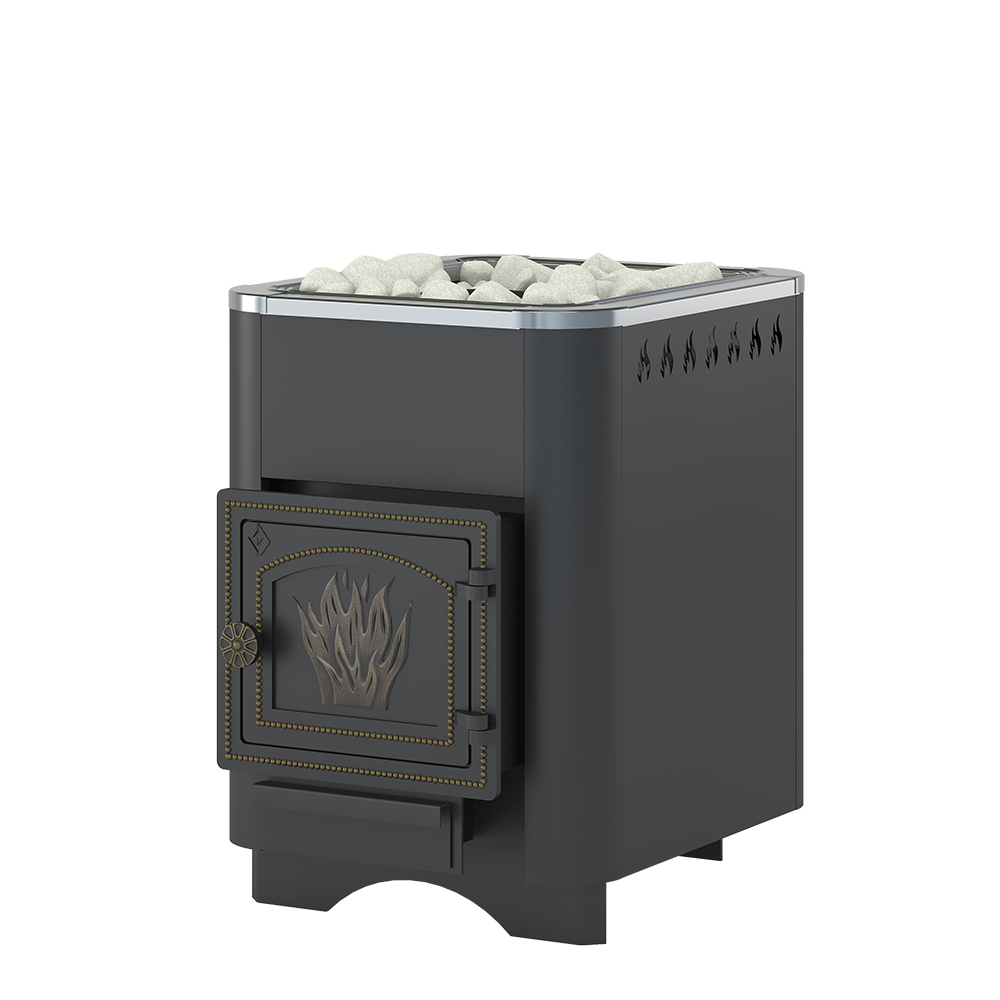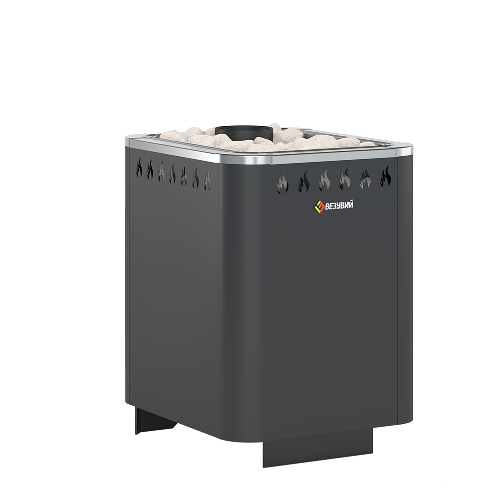 Стальной кожух печи зафиксирован на корпусе, для улучшения конвекции оснащён прорезными отверстиями в верхней части. Внутренние вырезы обеспечивают попадание холодного воздуха к камням, наружные – нагрев воздуха в парной.