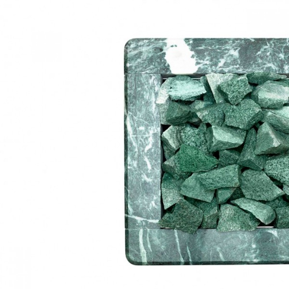 Электрическая печь KARINA Quadro 15 Змеевик представляет собой электрокаменку, полностью облицованную натуральным камнем, и способной прогреть коммерческие бани и сауны объемом до 24 м3. Электрическая каменка со всех сторон облицована натуральным змеевиком.