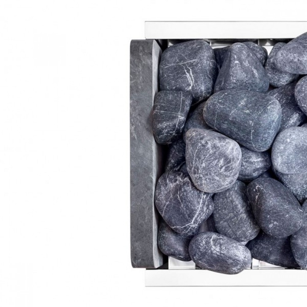 Благодаря своему стильному и лаконичному дизайну, электрокаменка впишется в сауны с различным интерьером. Простые формы каменки выгодно подчеркнуты 4 вертикальными камнями талькохлорита, которыми облицованы передняя и задняя стенки печи. Материал боковых стенок представляет собой высококачественная нержавеющая сталь, защищающая все внутренние элементы прибора от влаги, температурных перепадов и коррозии.
