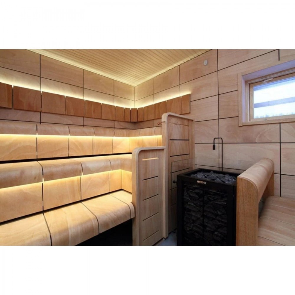 При разработке серии каменок HARVIA Modulo было уделено большое внимание процессам обслуживания изделий. Все сервисные операции изначально продуманы так, чтобы сделать их легкими и удобными. Эти каменки не требуют сложного монтажа и просты в обслуживании. Нагревательные элементы в печах Modulo отделены от каменной кладки, благодаря чему увеличился срок их службы. В случае необходимости, нагревательные элементы быстро и легко меняются без переукладки камней. В качестве дополнительных опций для HARVIA Modulo предлагаются защитные поручни и защитные стеклянные стены. Стильная стеклянная стена не только предотвращает разбрызгивание воды, но и служит декоративным элементом.