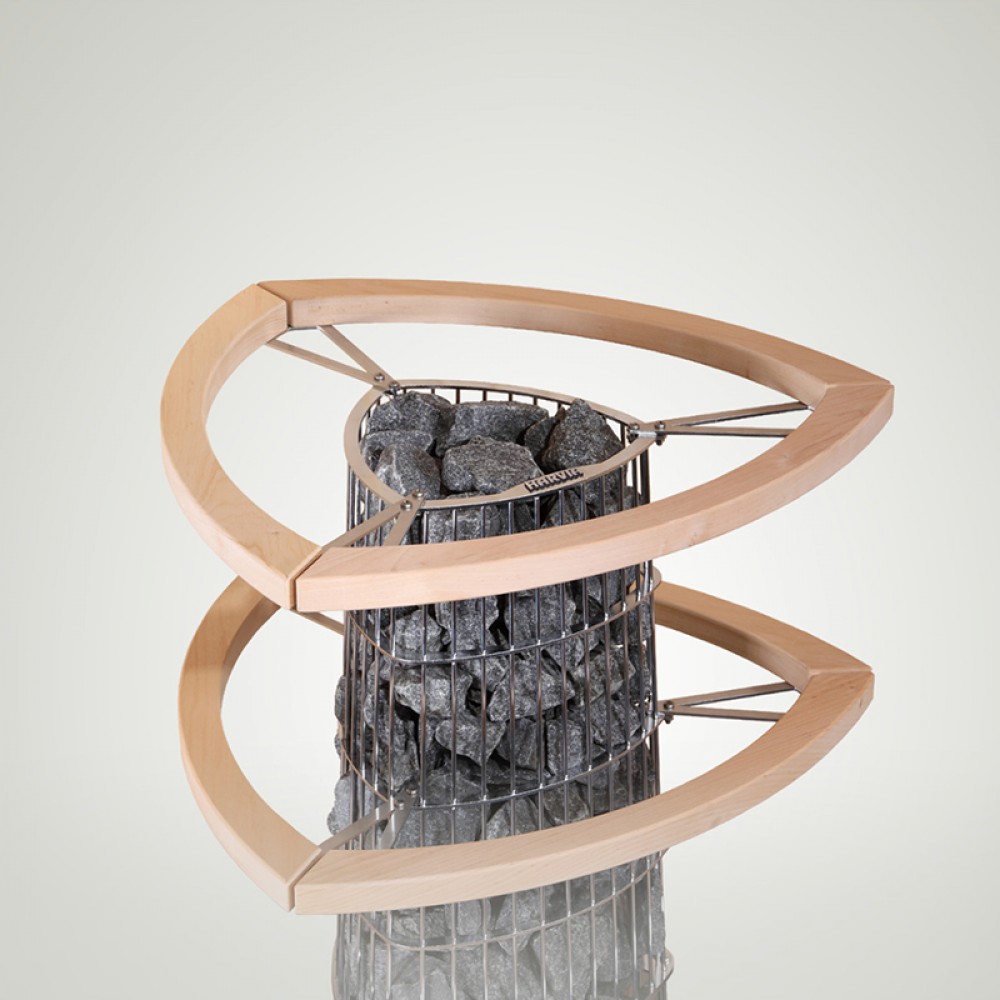 Эти прочные защитные перила, установленные на двух уровнях, соответствуют стильной уникальной треугольной форме каменки.