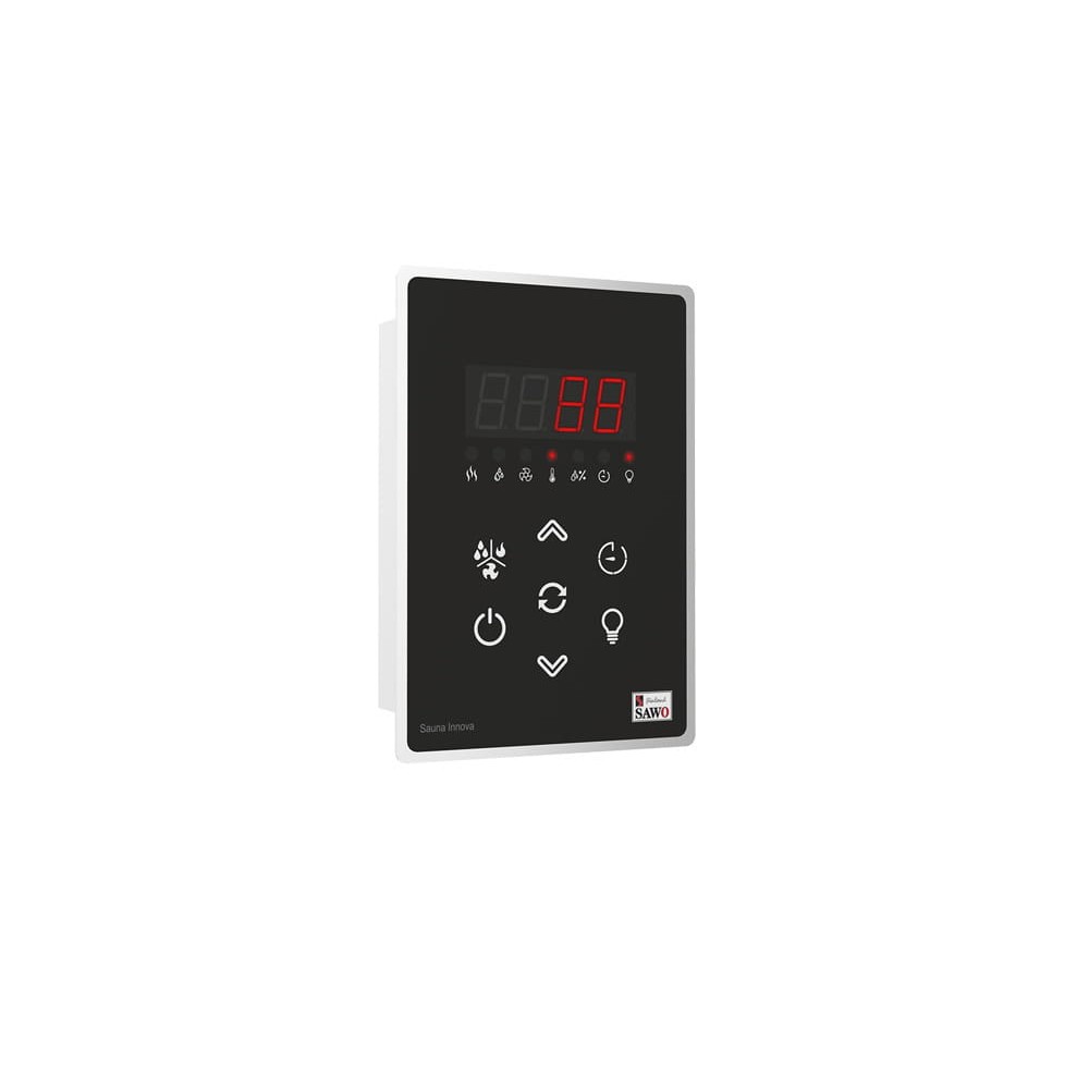 Пульт управления сауной INC-S-V2 Innova Classic создан инженерами компании SAWO для электрокаменок собственного производства. Модель имеет интуитивно понятный интерфейс. Управление банной техникой при помощи пульта INC-S-V2 Innova Classic станет настоящим удовольствием. Хромированная рамка, прямоугольная форма и стильный чёрный цвет корпуса в сочетании с красной подсветкой данных дисплея делают пульт ярким и современным акцентом в интерьере любой сауны.