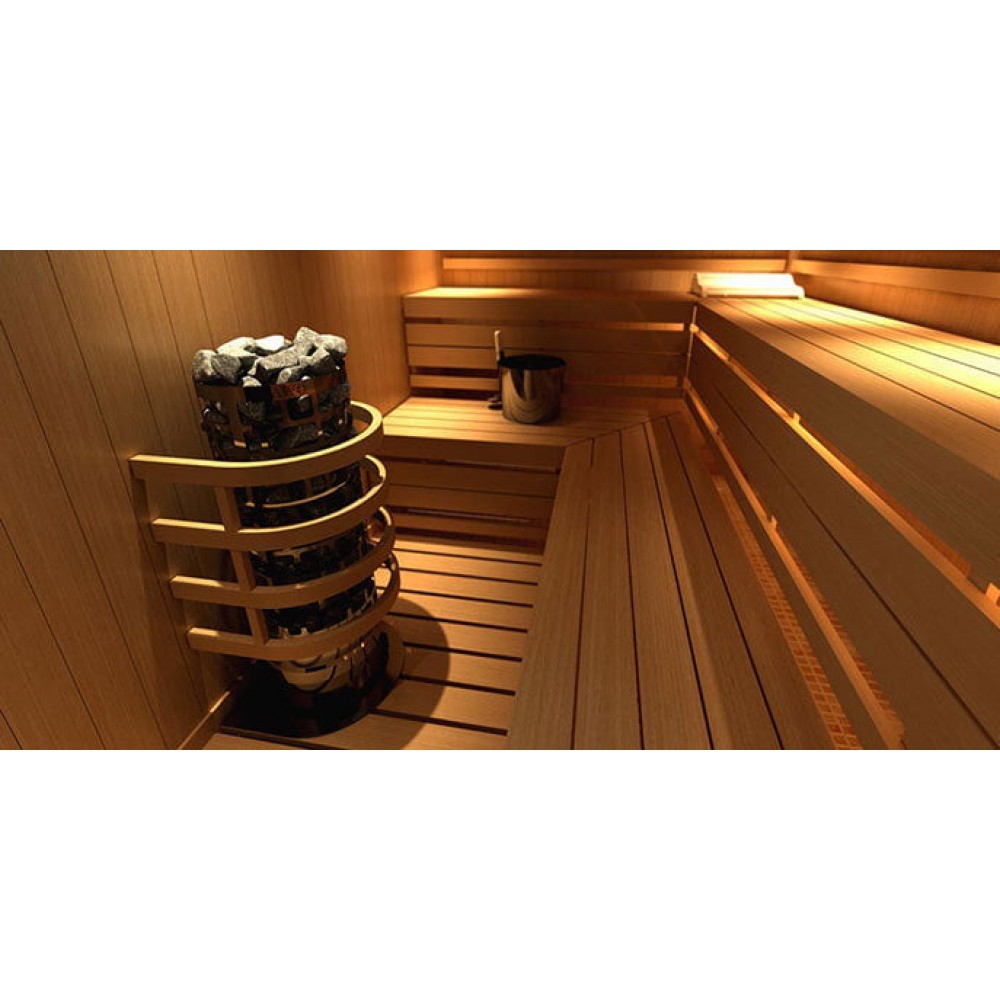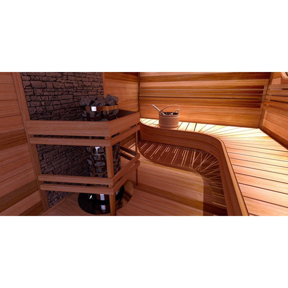 Поддавать пар можно подливая воду на камни не только сверху, но и по бокам. Площадь испарения при этом колоссальна. Это не оставит равнодушным ни одного любителя влажной русской бани. В считанные мгновения помещение парной наполняется необходимым количеством лёгкого мелкодисперсного пара. Поклонники же традиционной сухой сауны оценят скорость и равномерность прогрева воздуха.