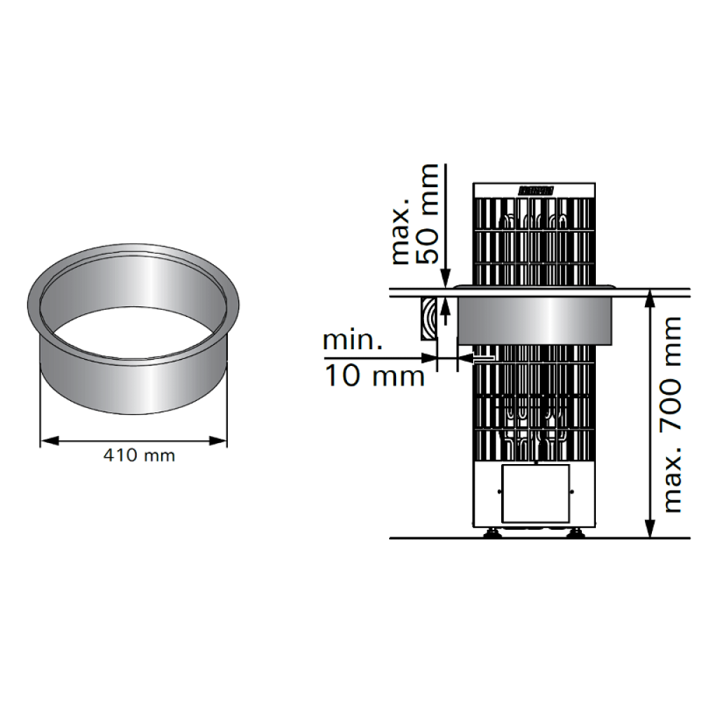 Монтажный фланец для встраивания печи Cilindro в полок.