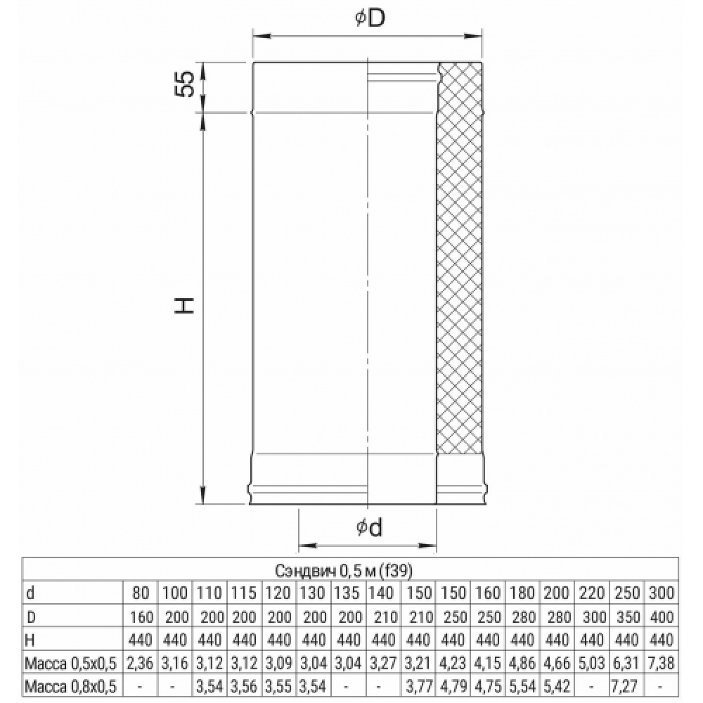 Сэндвич 0,5 м (304/0,8мм + нерж.+ ceramics) Ф115х200 Ferrum