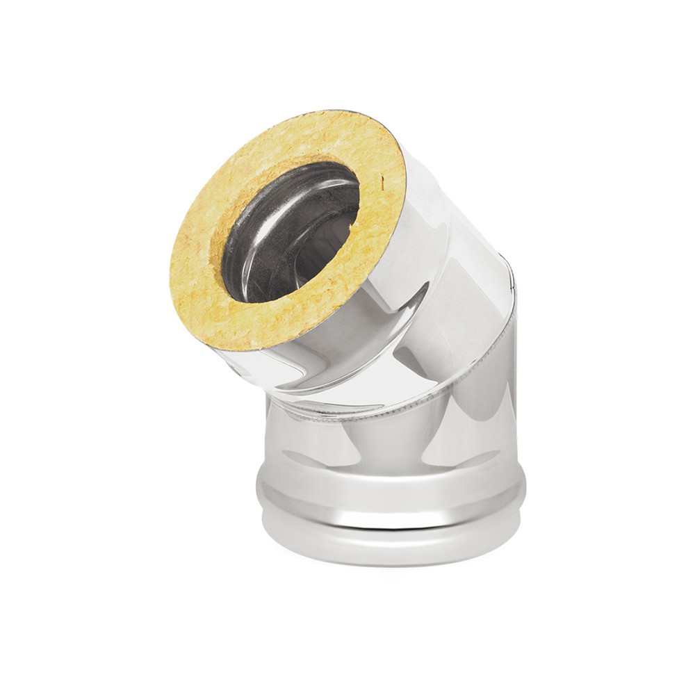Сэндвич-колено Нерж+Нерж (AISI 430/1,0мм) 45° 2 секции д.150х250 - элемент дымоходной системы, с помощью которого можно изменить направление канала (на угол 45 °) с целью обхода препятствий.