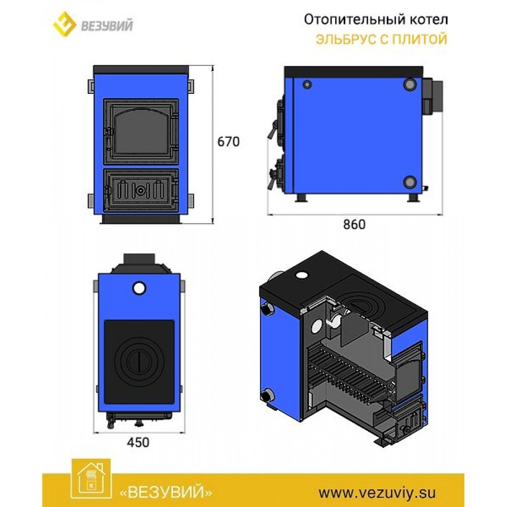 Отопительный котел Везувий Эльбрус - 18 с плитой