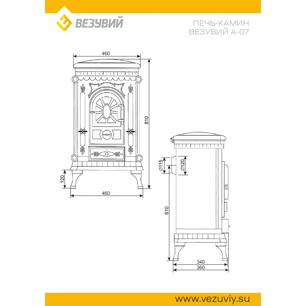 Заказать и приобрести Чугунная ПЕЧЬ-КАМИН Везувий А-07 "Медь" от производителя Везувий