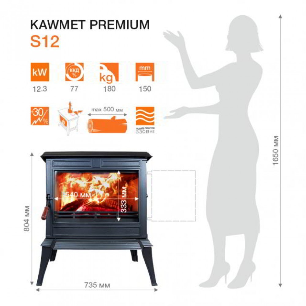 Чугунная печь KAWMET Premium S12 (12,3 кВт) это печка польского завода KAWMET премиум класса у которой отличный дизайн и продвинутая, современная конструкция, топка используется для отопления помещений, а также как предмет интерьера. Имея более 38-летний опыт в сфере чугуна, новые печки KAWMET серии Premium славятся своей прочностью, надежностью и красотой.
