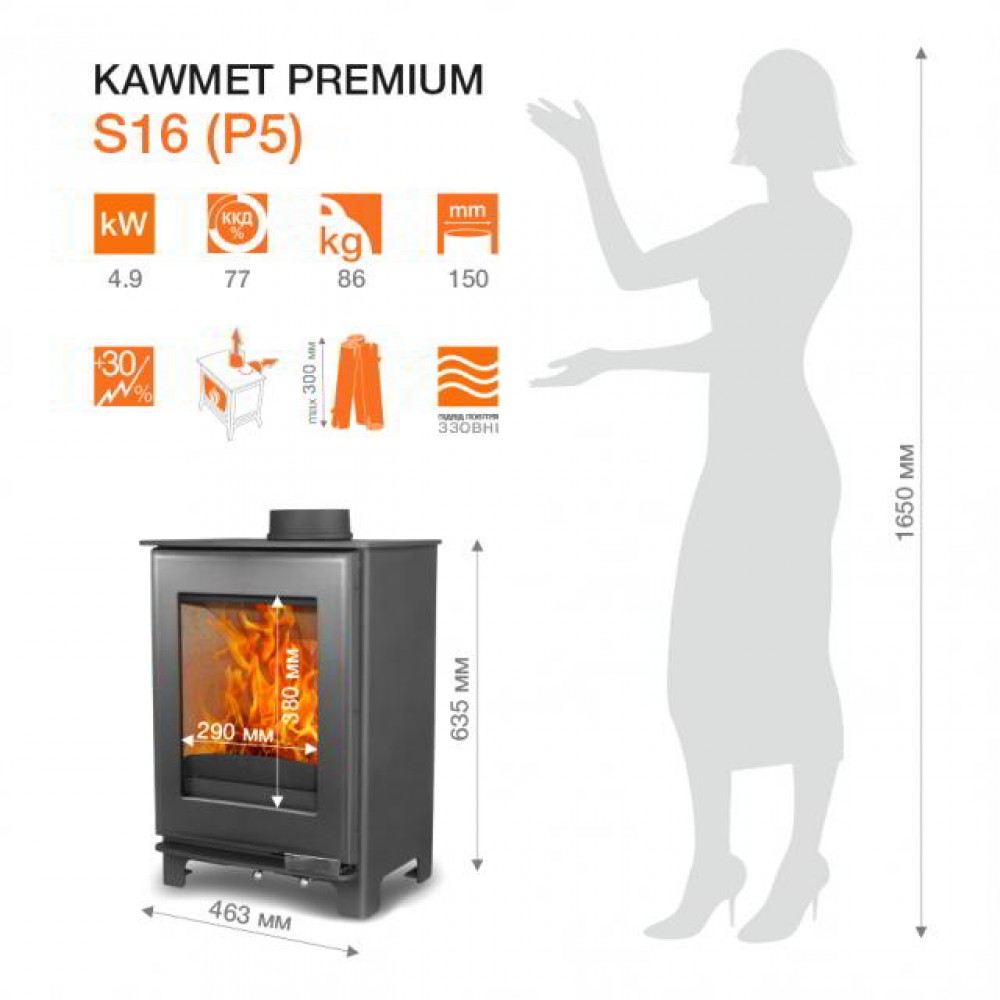 Описание Печь камин KawMet Premium S16 (4,9 kW)