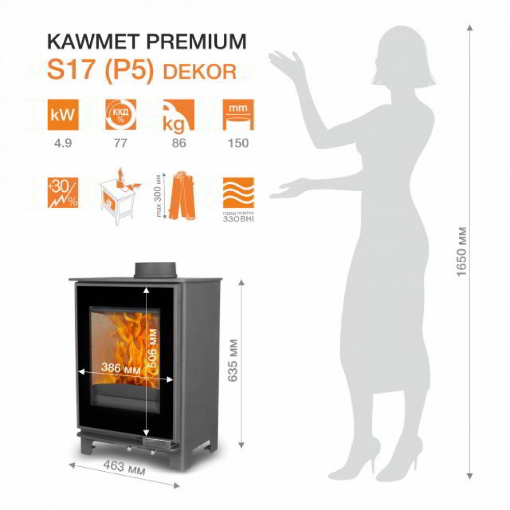 Описание Печь камин KawMet Premium S17 Dekor (4,9 kW)