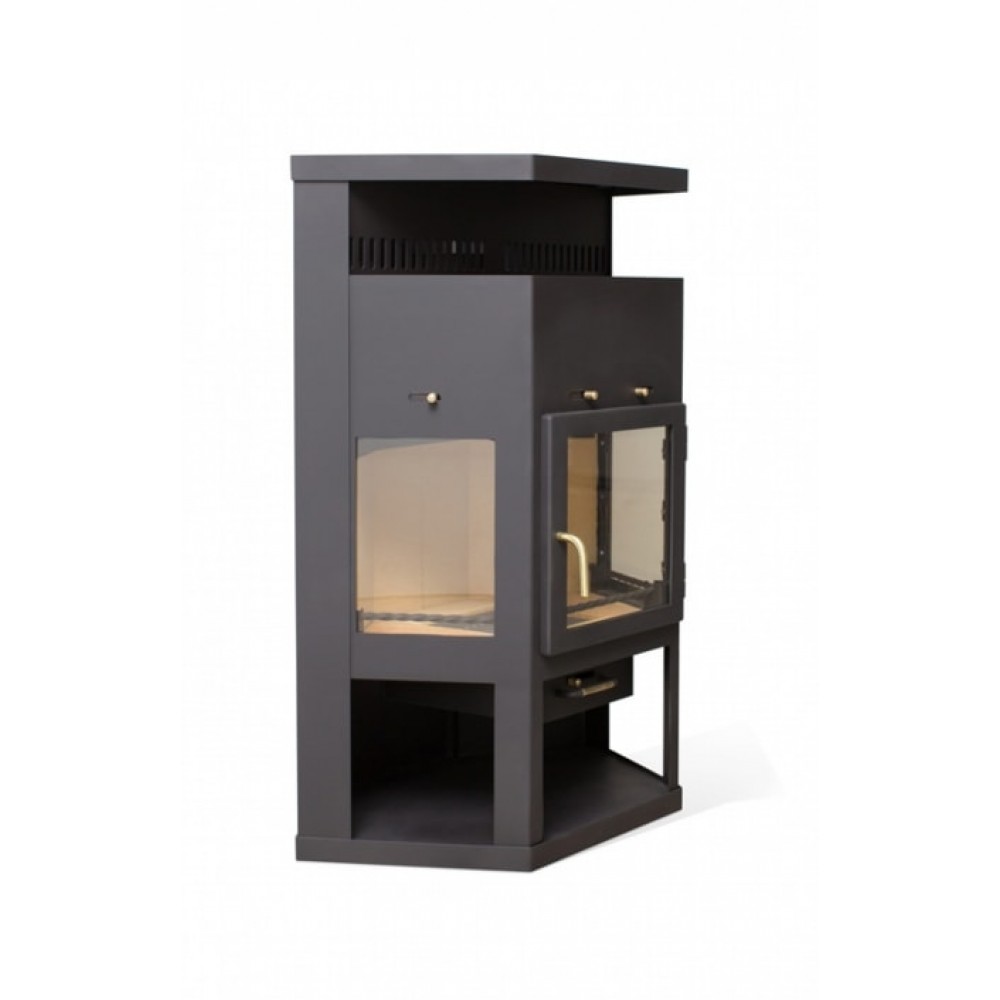 Пристенно-угловая модель с универсальным подключением дымохода (заднее и верхнее).