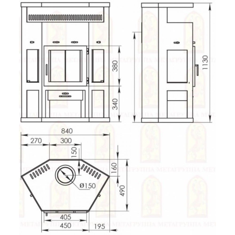 | Диаметр дымохода, мм: | 150 |