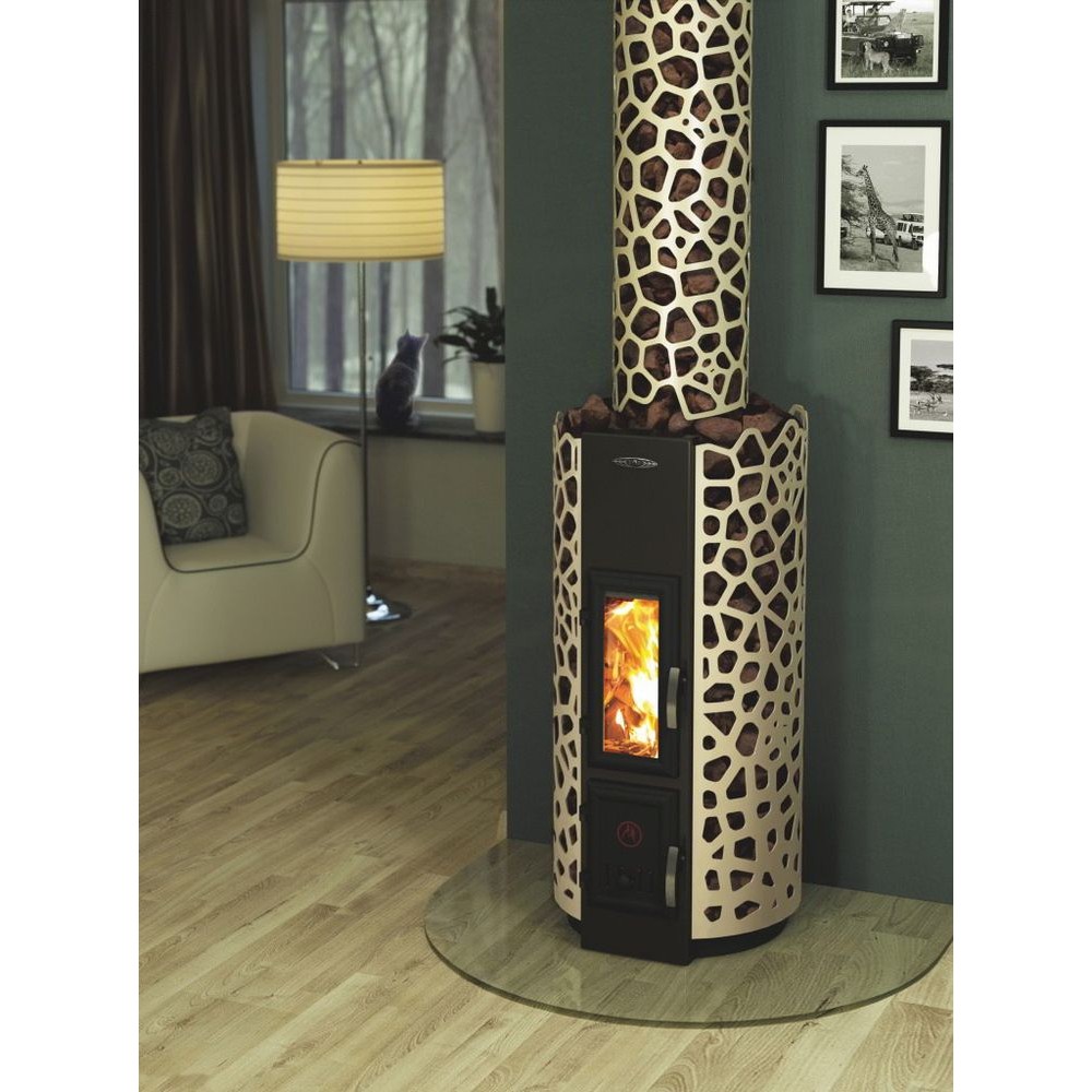 Печь одинаково выглядит со стороны, так как сделана круглой. Поэтому устанавливать можно возле стен, в углу и в центре помещения.