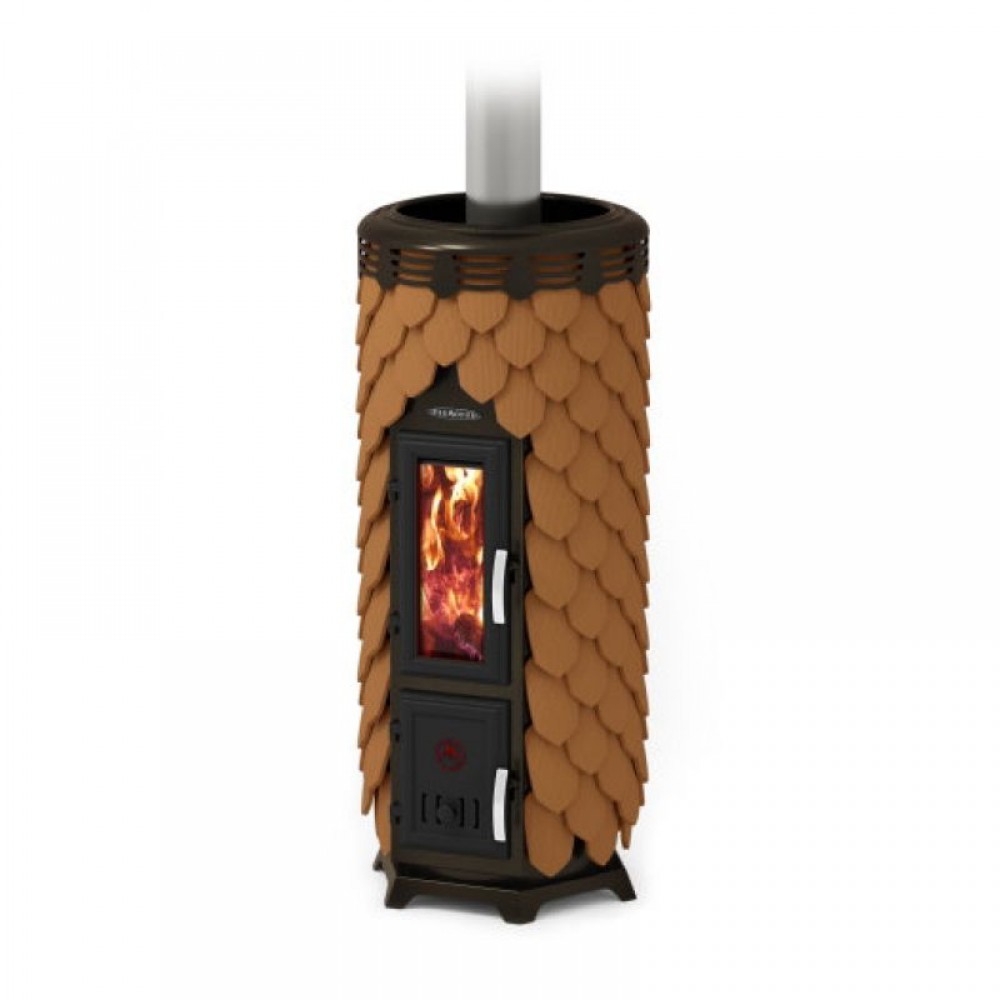 Дровяная отопительная печь «Панголина» – первая керамико-металлическая отопительная печь «TMF». Это стальная печь, облицованная снаружи изразцами из терракотовой керамики.