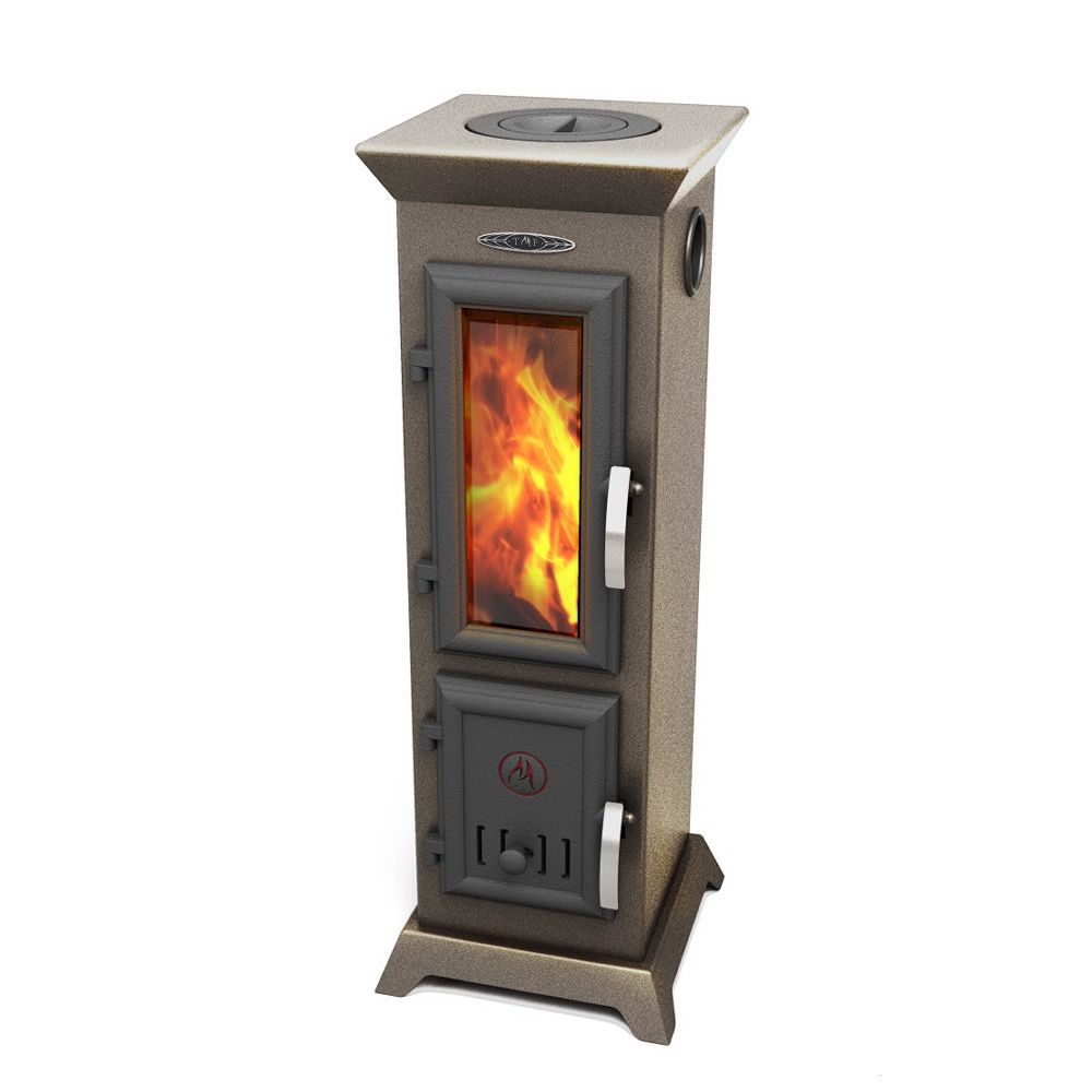 Интерьерная дровяная отопительно-варочная печь «Статика Тетра Мини» сочетает в себе функционал отопительно-варочной печи и а и рассчитана на объем отапливаемого помещения до 100 м3.