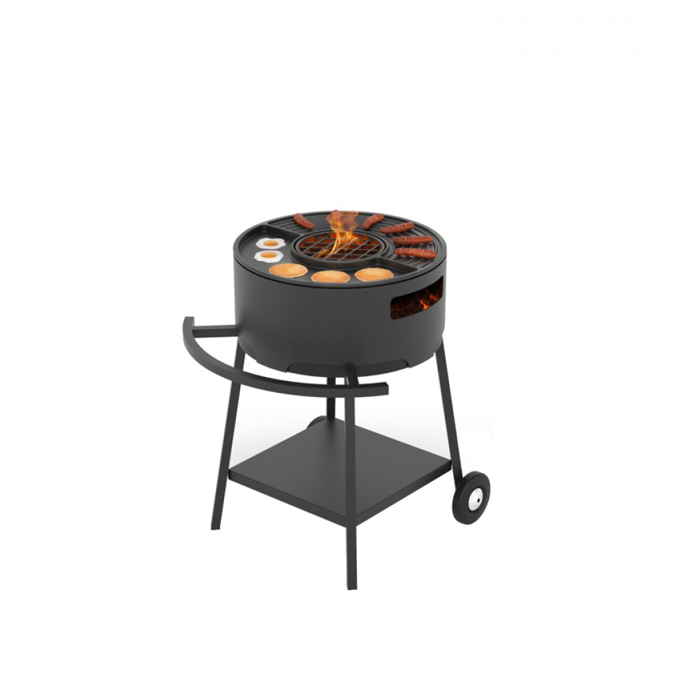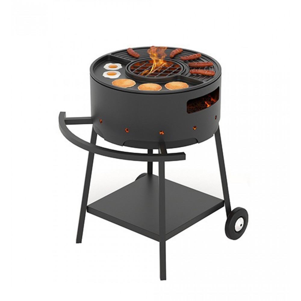 Мангал Дачник, изготовленный из конструкционной стали толщиной 2 мм, имеет круглую форму. Он предназначен для совместного использования чугунной плитой Везувий Gurman диаметром 45 сантиметров.