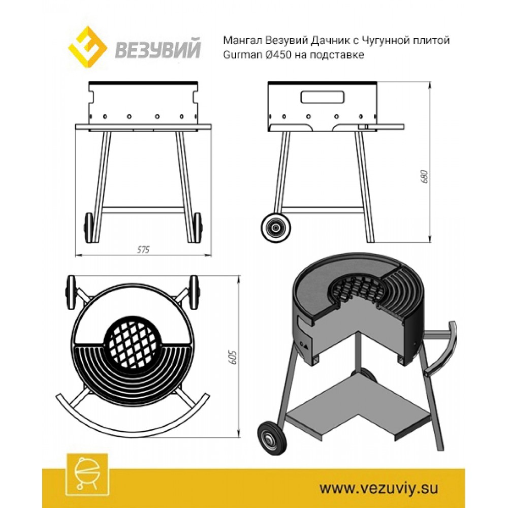 Описание Мангал Везувий Дачник с чугунной плитой Gurman на подставке